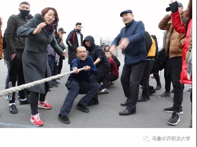 12月13日工商管理学院党总支在新校区篮球场举行了“十九大精神进万家·民族团结一家亲拔河比赛”活动。校党委委员、副校长艾合买提·哈斯木、工商管理学院全体老师、后勤党总支教工、体育系党总支和以及全体结亲学生共同参加了这次拔河比赛。